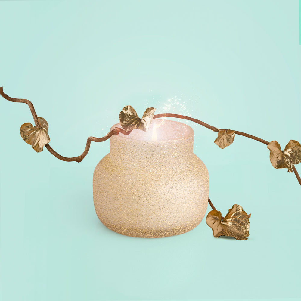 -Champagne Colored Candle Jar with a Striking Glitter Finish